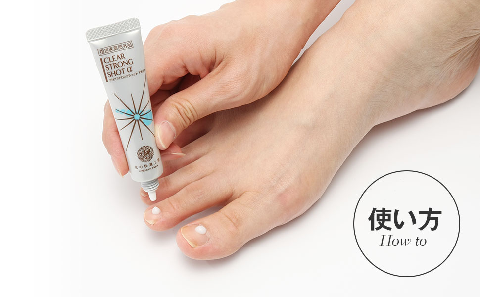 指定医薬部外品として認定されている薬用「 クリアストロングショットα(アルファ)」は爪周りのトラブルを対策する外皮消毒剤です。ジェルを1日2回爪周りに馴染ませるだけでケアできるため、手軽に始められるのがポイント。